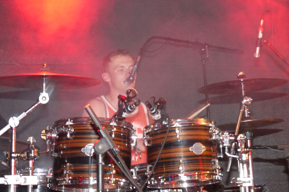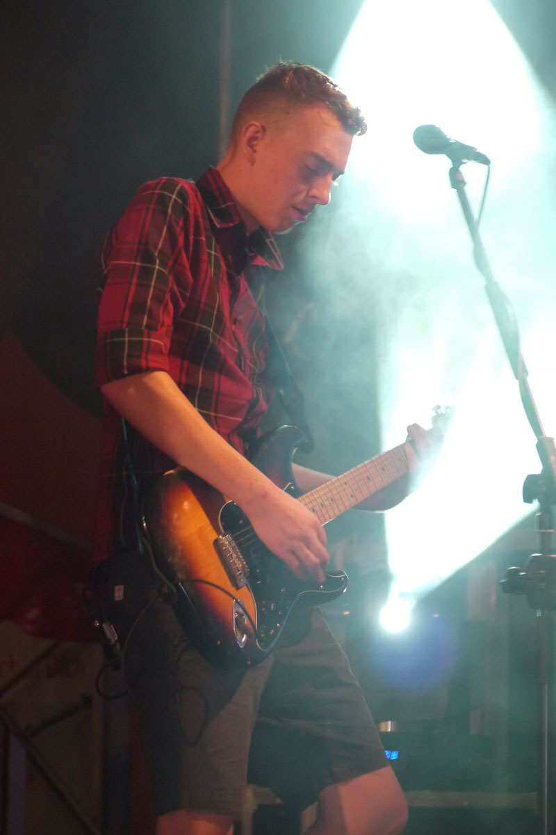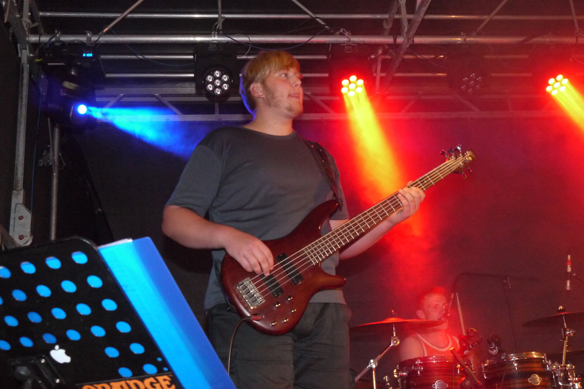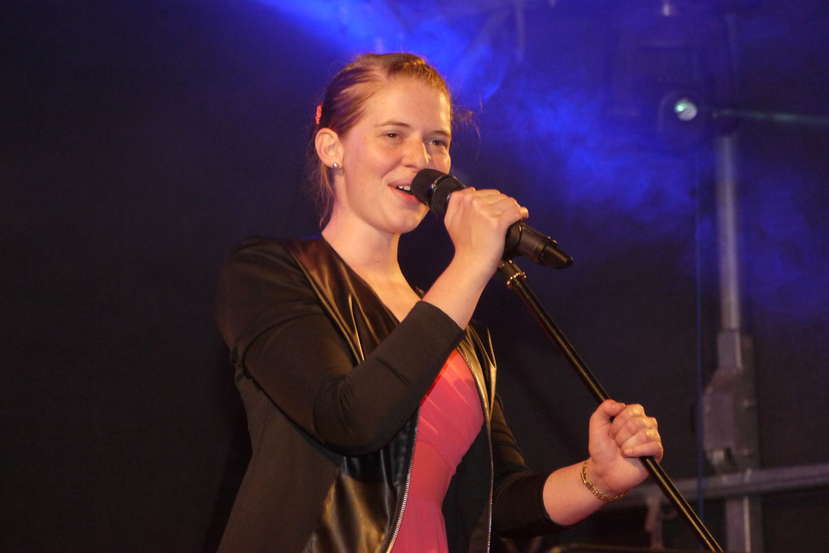 Mit großer Spielfreude rockten Bastian an der Gitarre, Clemens am Bass, Maximilian an den Drums und Bandsängerin Eva vor weit über 1000 Besuchern den Schleizer Neumarkt.