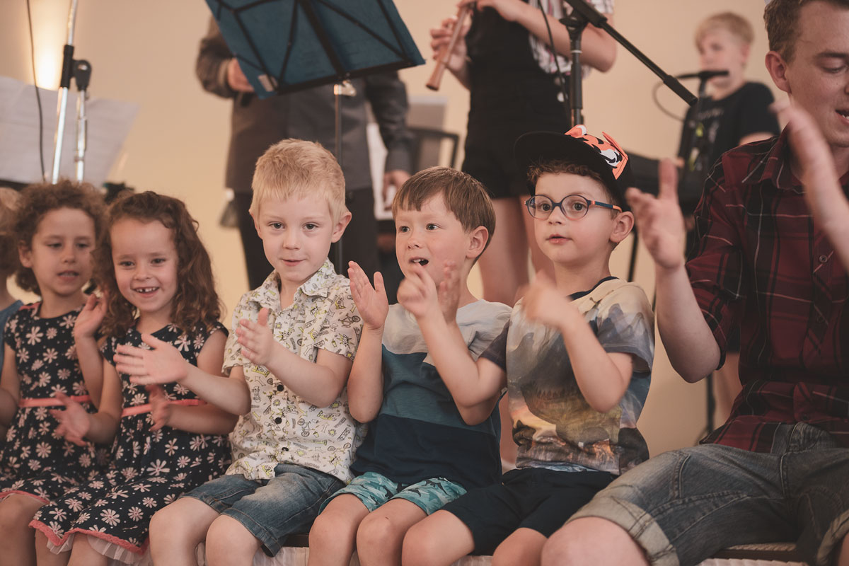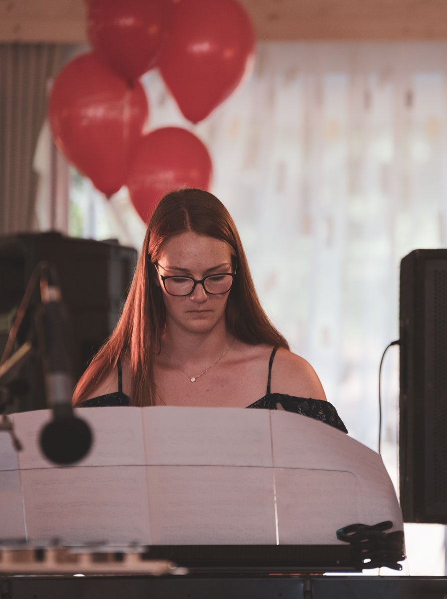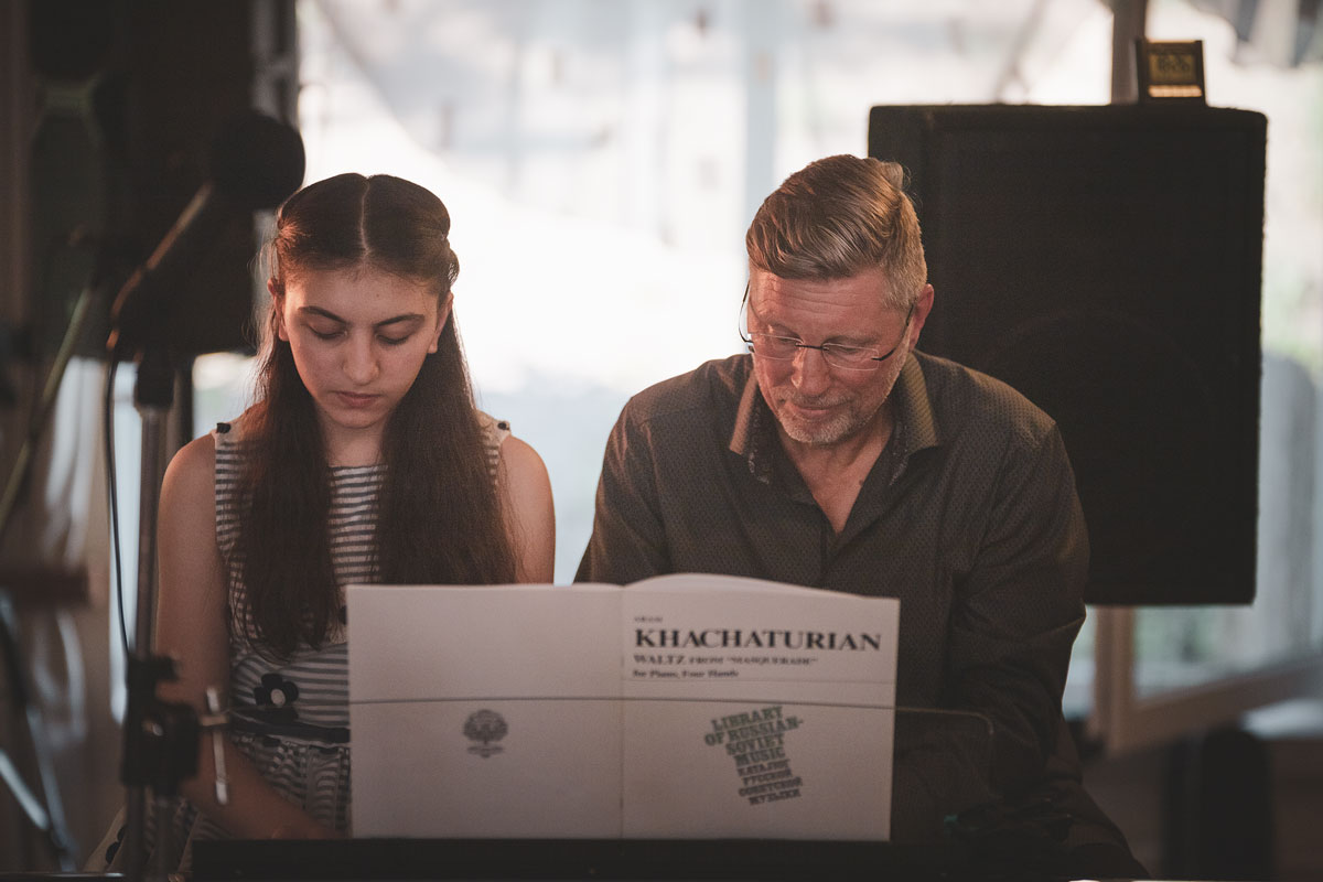 Im Konzertsaal waren die Temperaturen vermutlich höher. Bei unseren jungen Virtuosen kam Lampenfieber dazu. Alle verfügbaren Plätze waren besetzt: Die Fußbodenplätze vor der Bühne belagerte der jüngste Nachwuchs.