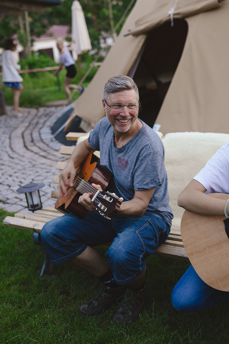 Alle freuten sich über einen gelungenen Auftritt und lauschten bei verschiedenen Leckereien vom Rost bis in die späten Abendstunden den Klängen der Gitarren am Lagerfeuer.