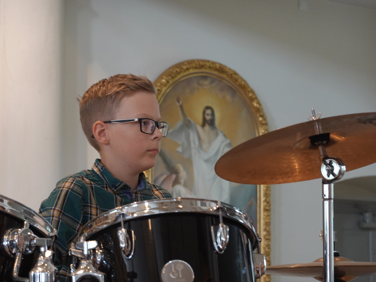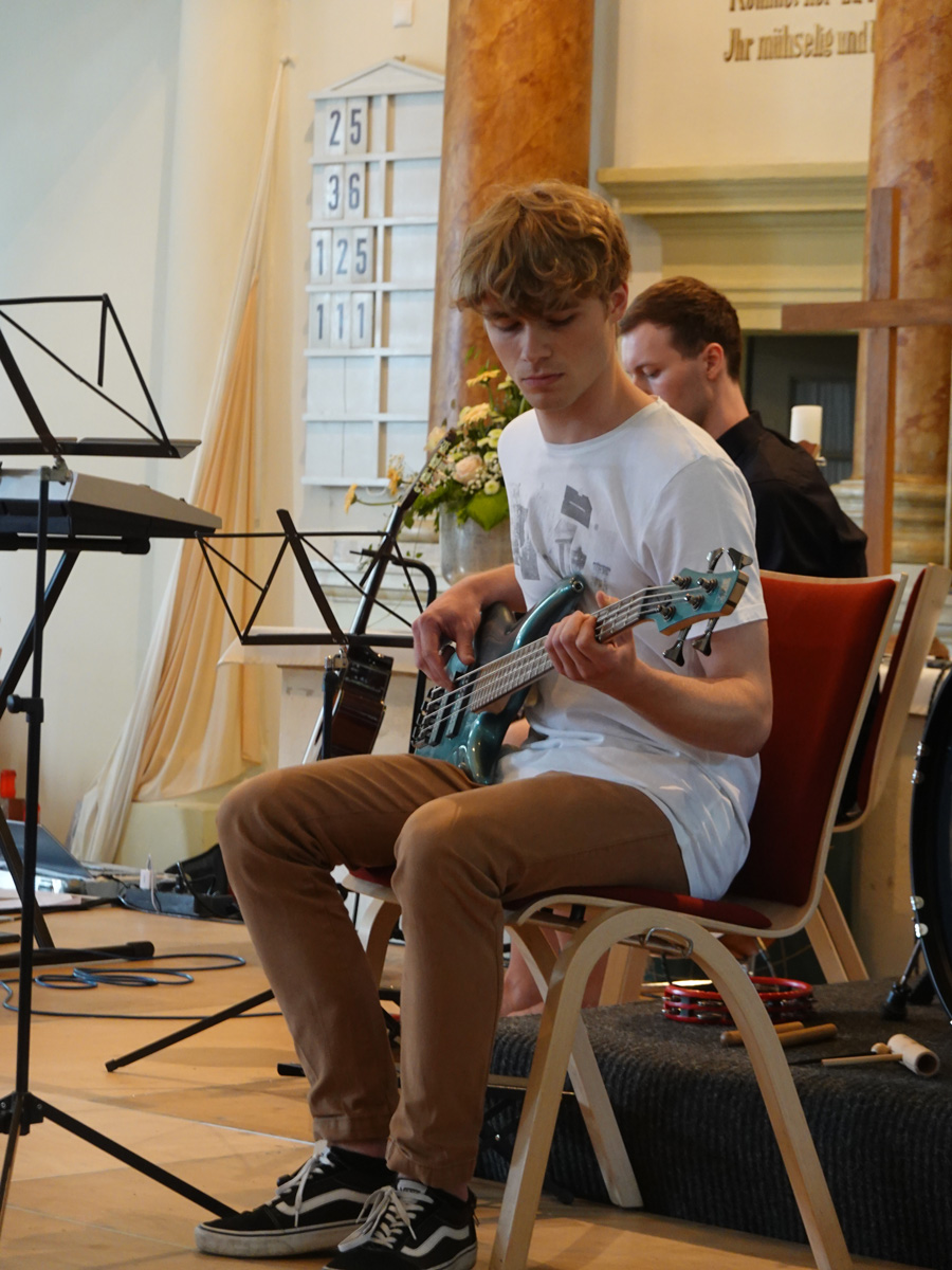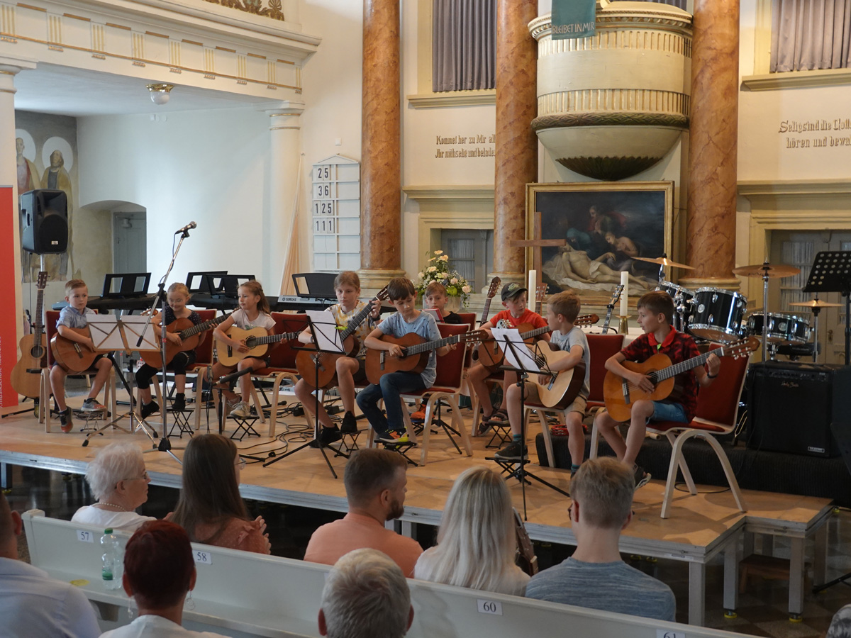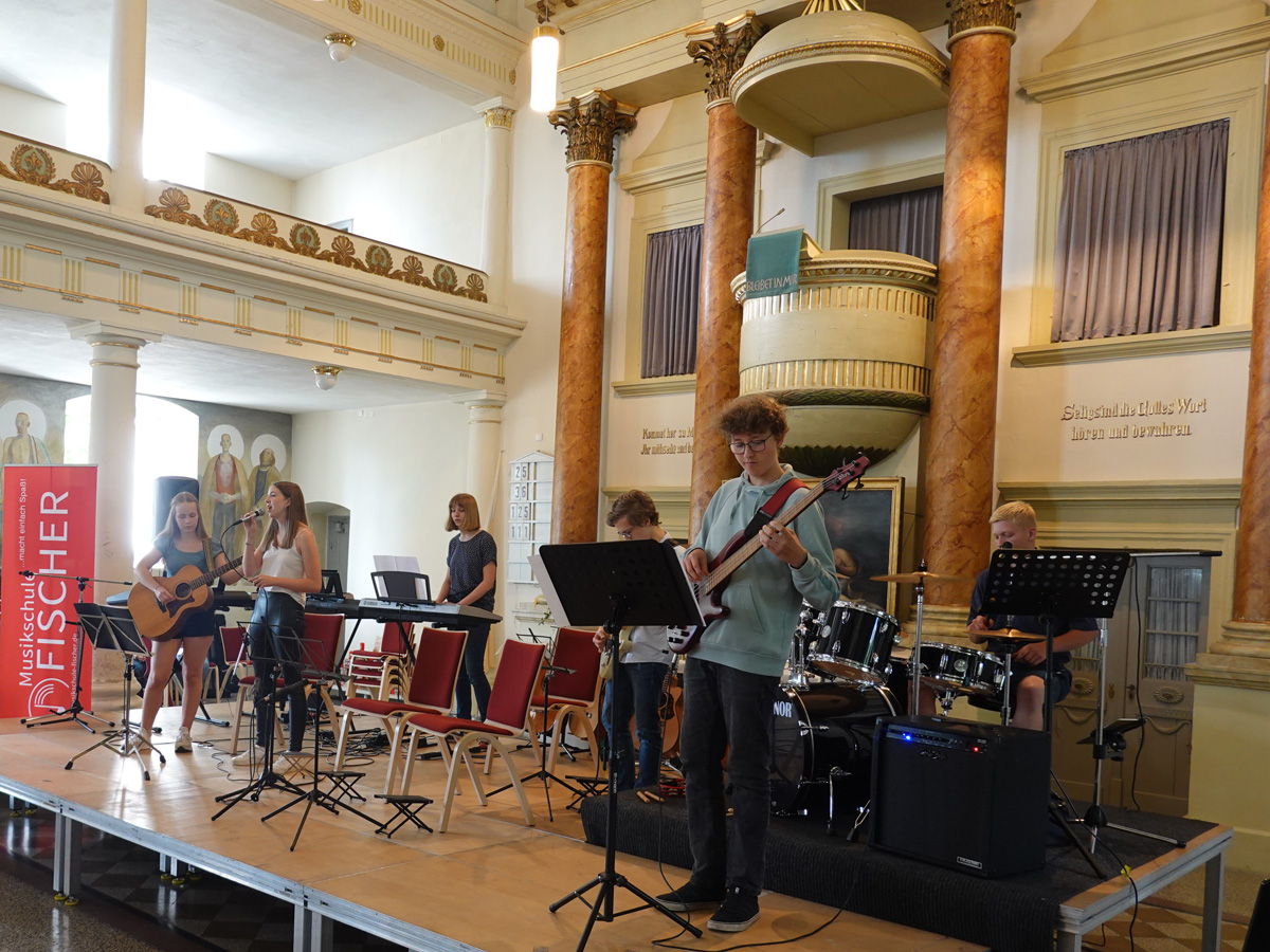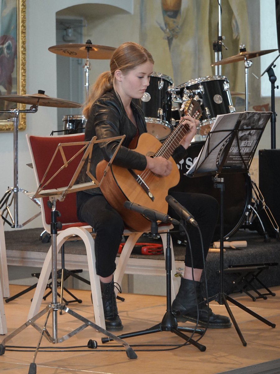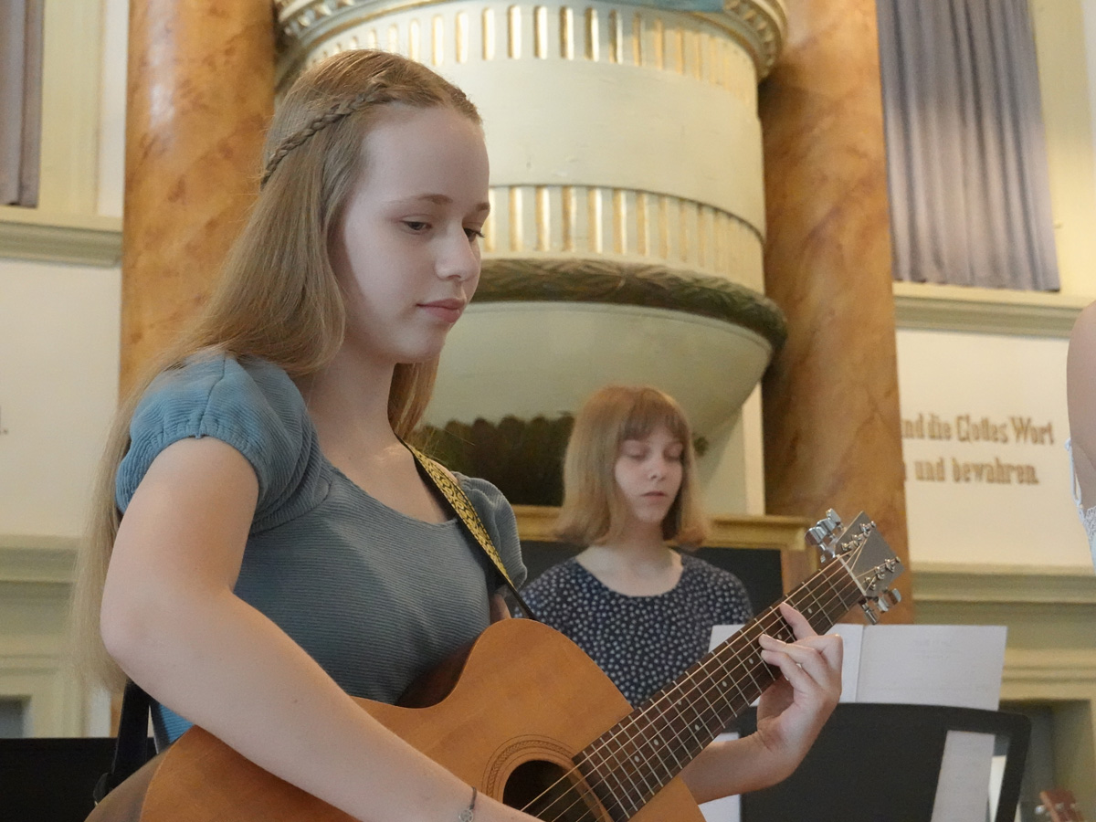 Der Höhepunkt des Konzertnachmittags war aus aktuellem Anlass das Stück „Komm wir ziehen in den Frieden“ von Udo Lindenberg. Dieses wurde in einem großen Ensemble mit Chor, Piano, Altblockflöte, Gitarren und vielen anderen Instrumenten vorgetragen, was zusammen mit der hervorragenden Akustik der Kirche für Gänsehaut beim Publikum sorgte.