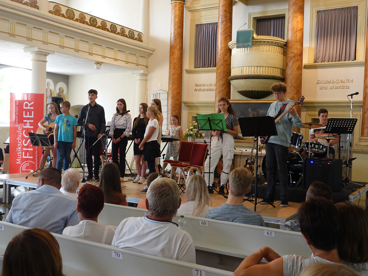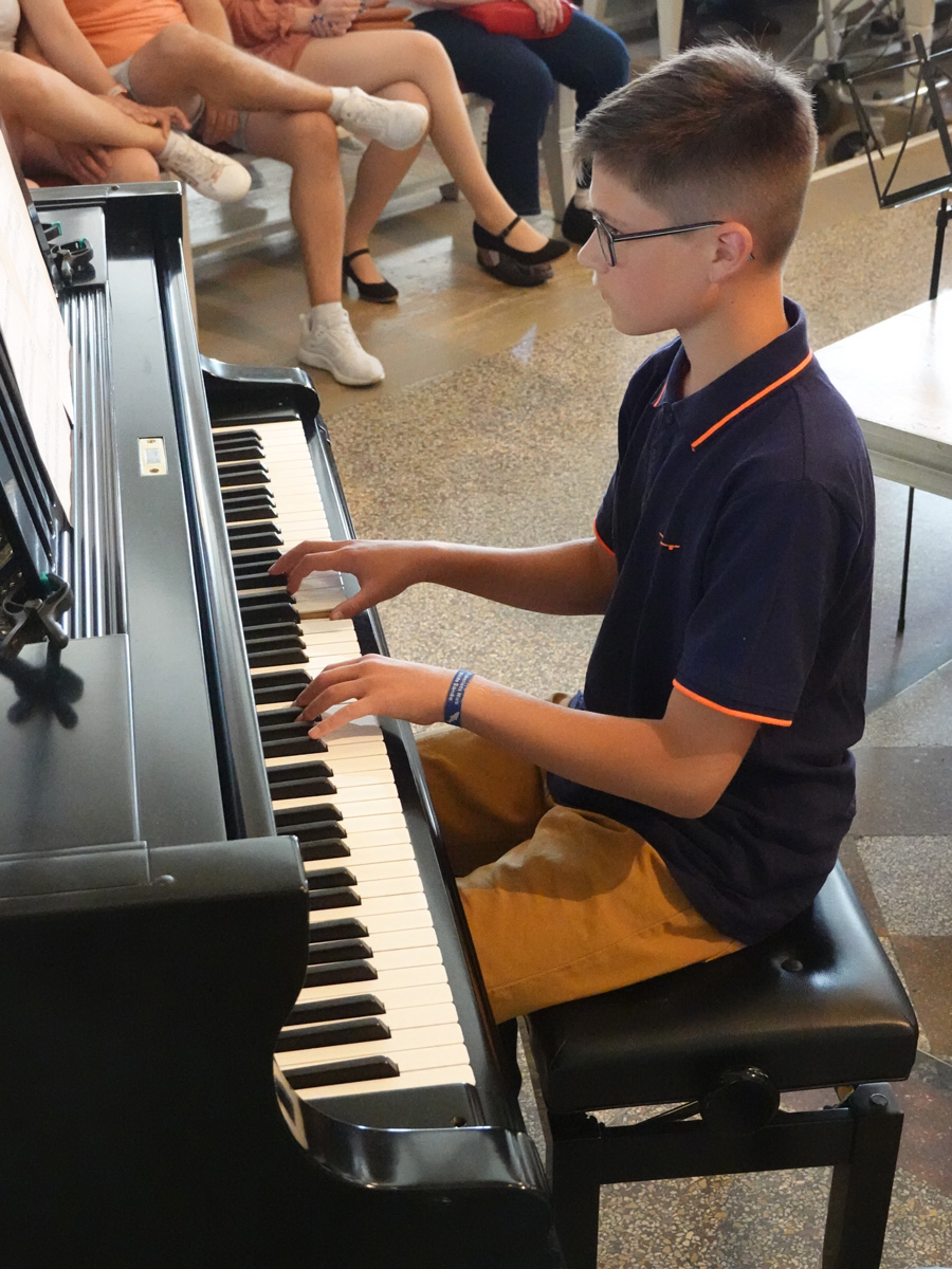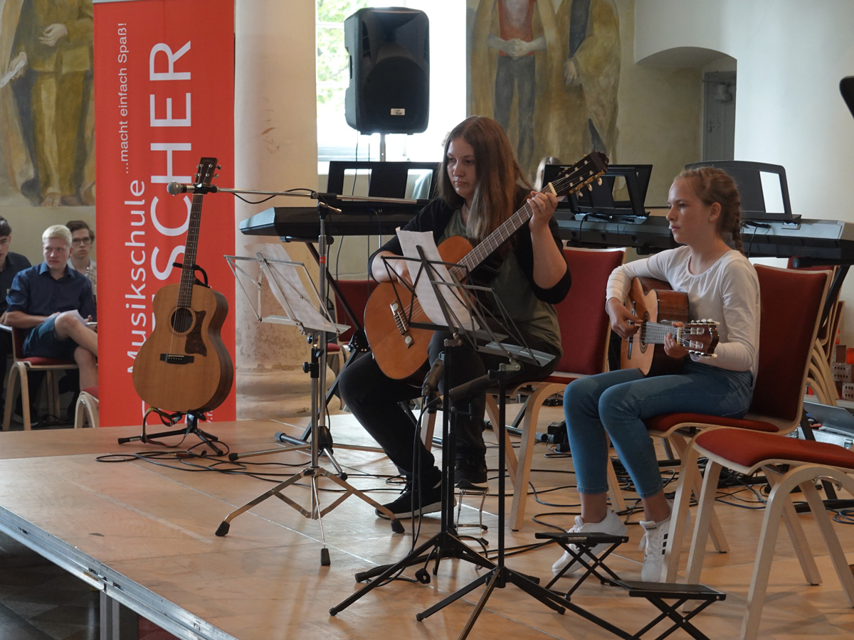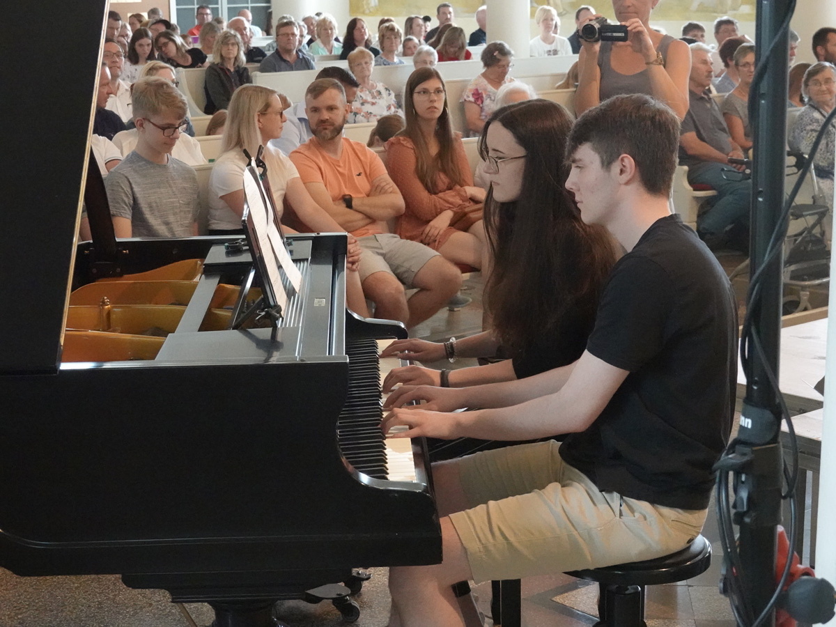 Fast 70 unserer Schülerinnen und Schüler gestalteten das Programm mit Solo-Beiträgen, im Duett oder Ensemble und zeigten ihr Können an den Instrumenten und beim Gesang.